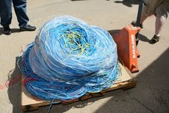 広い会場とすごい量のケーブル