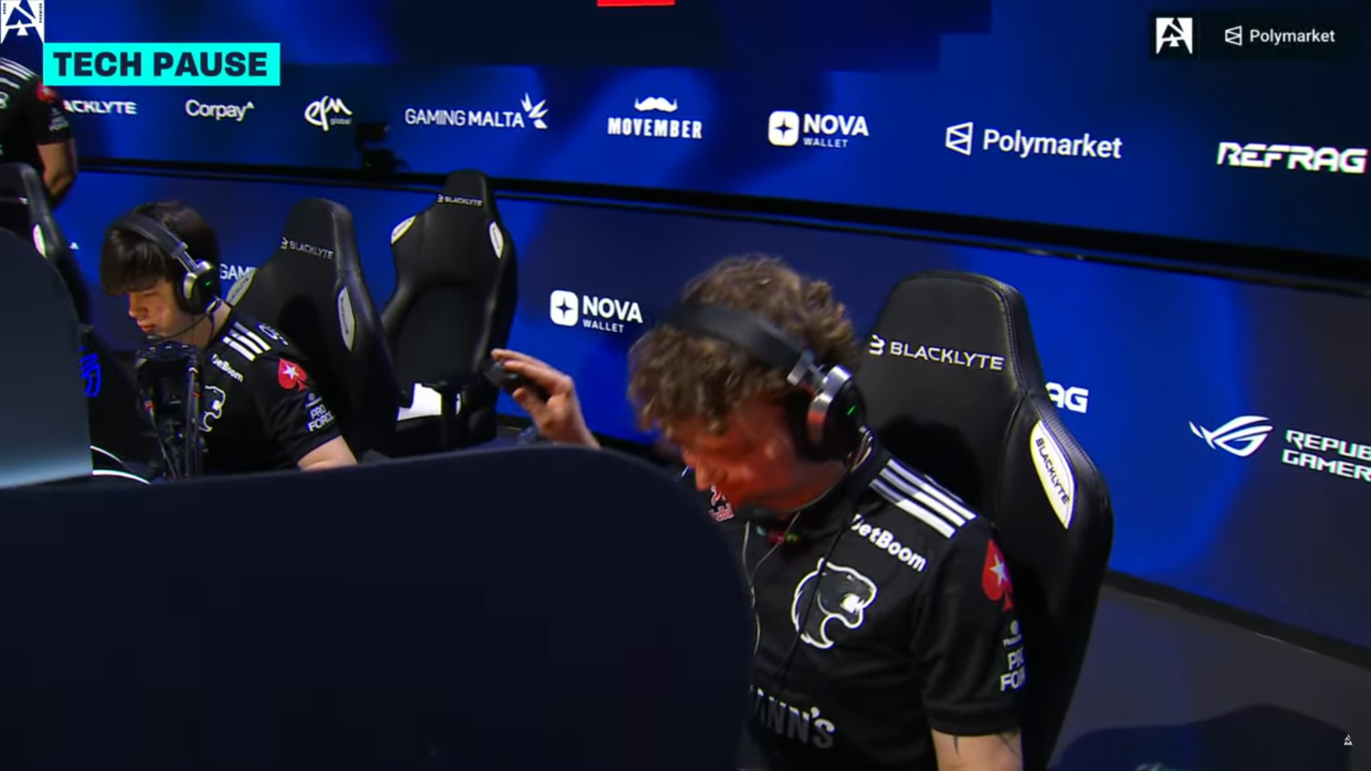 FURIAのYEKINDAR選手がマウスを叩きつけた結果テックポーズとなり、試合が中断される一幕がありました。